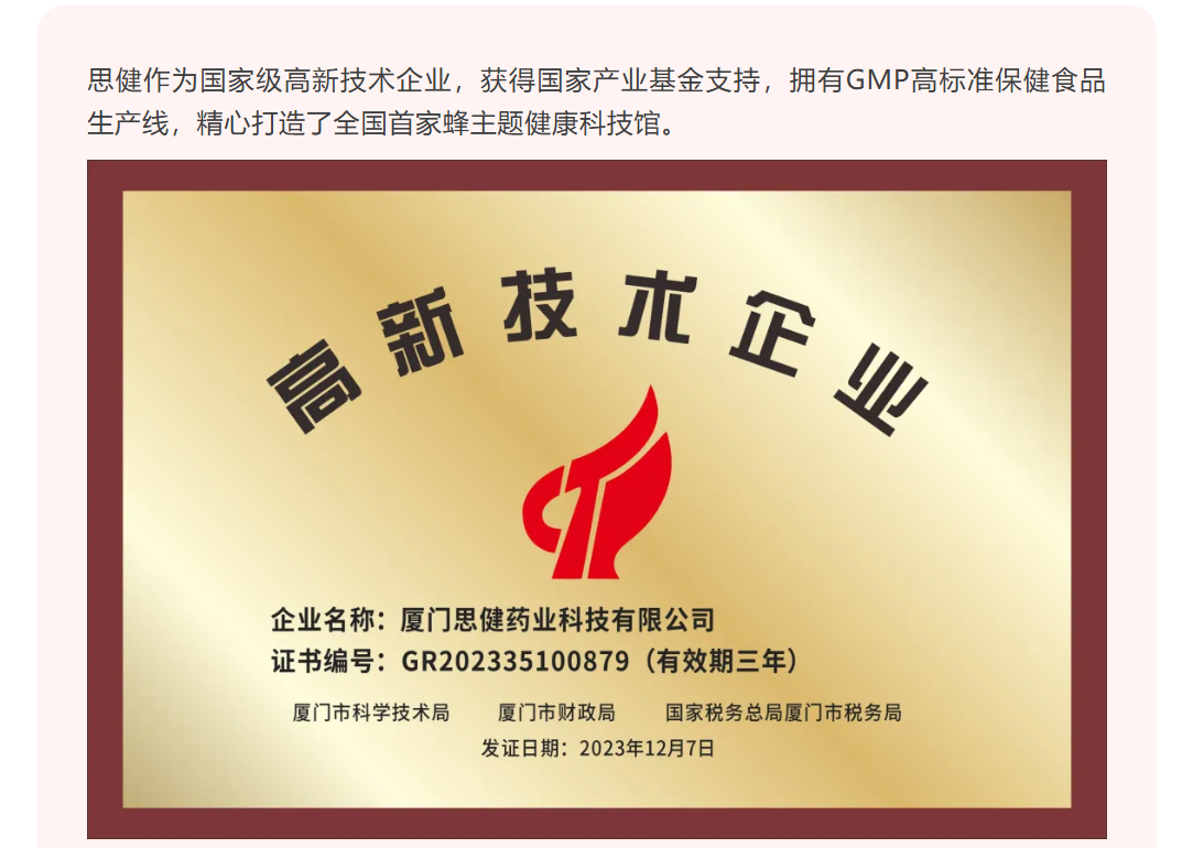 思健生物科技誠邀您共赴廈門出席第九屆中國(廈門)蜂膠高峰論壇:與蜂業(yè)權(quán)威面對(duì)面,洞見蜂膠國際新未來